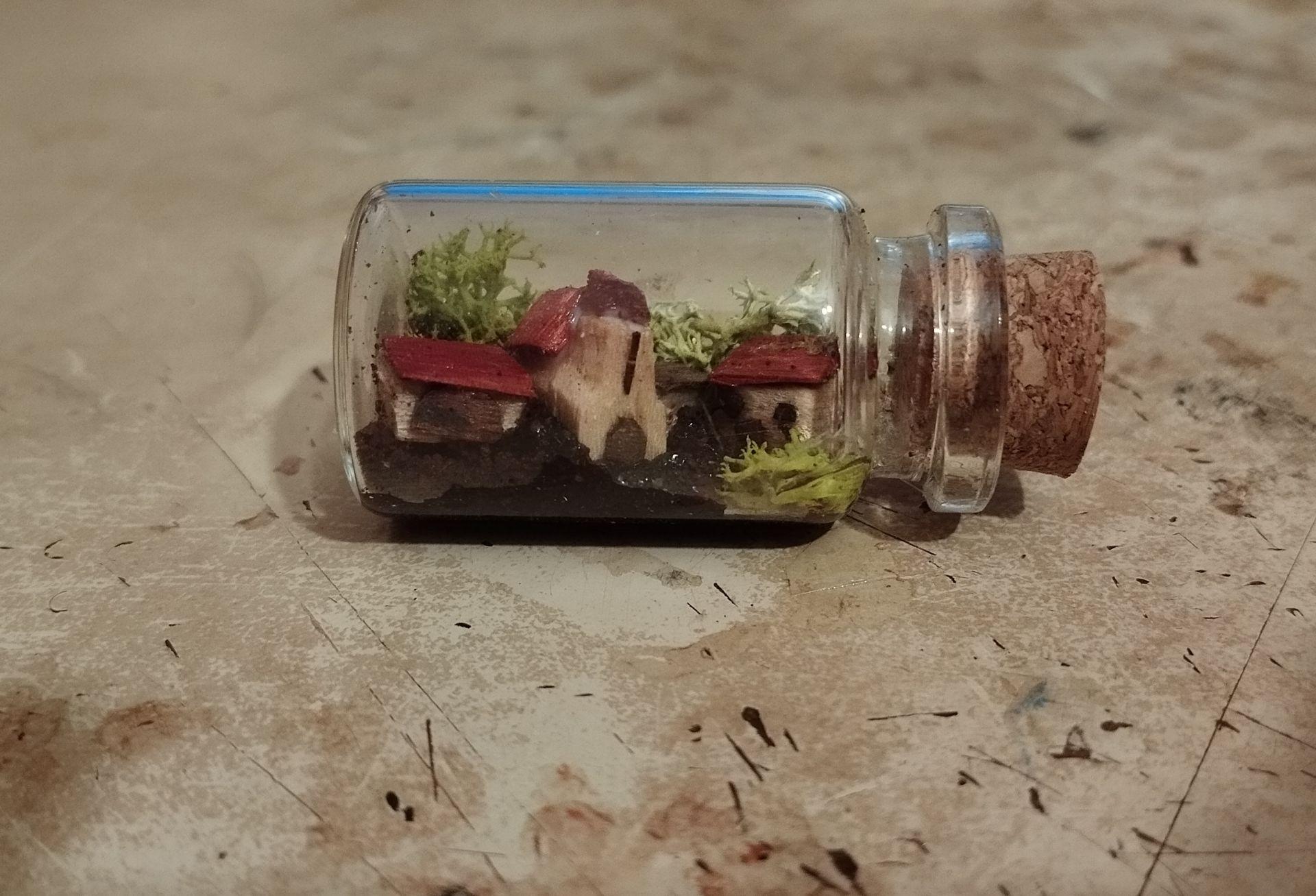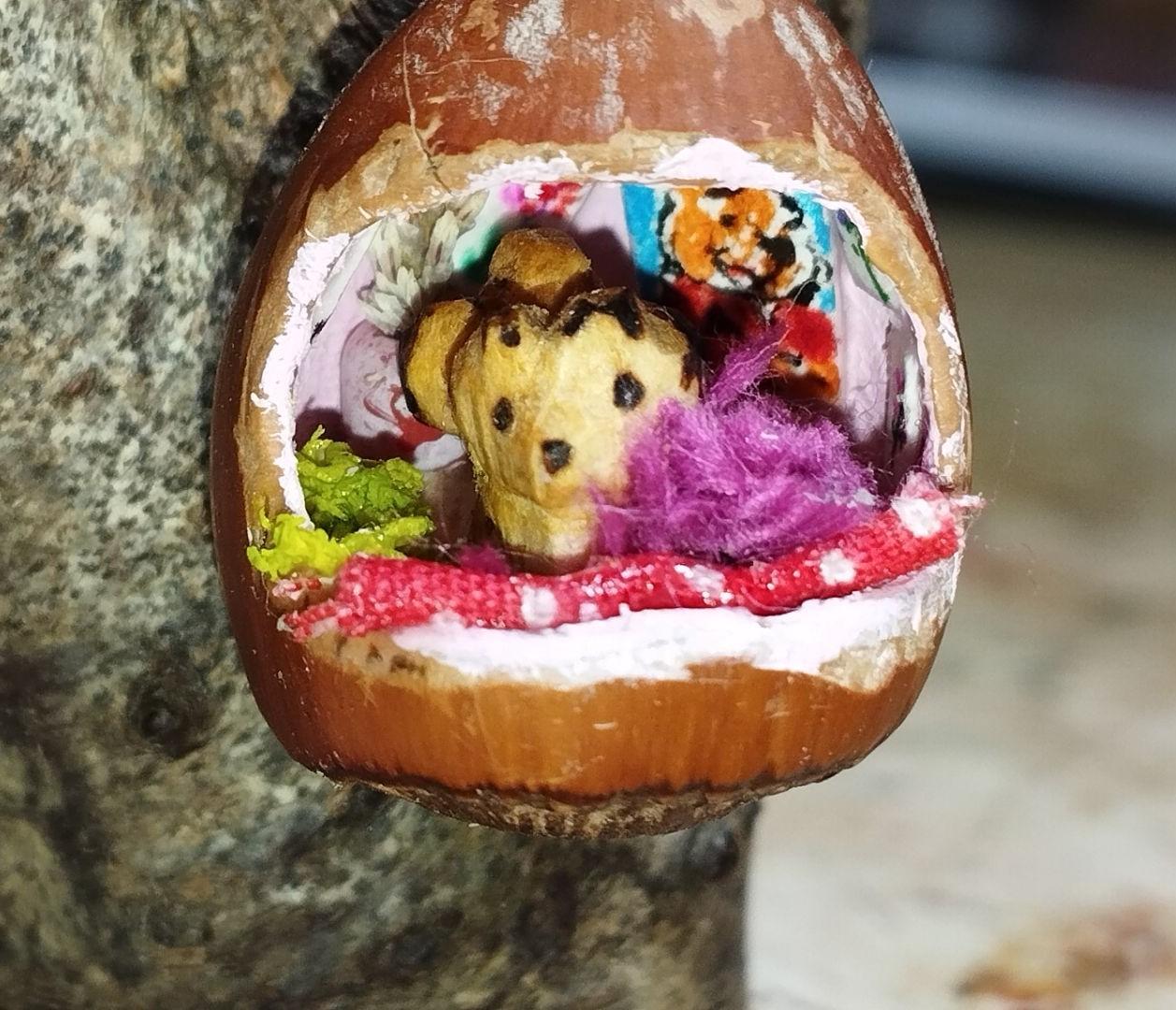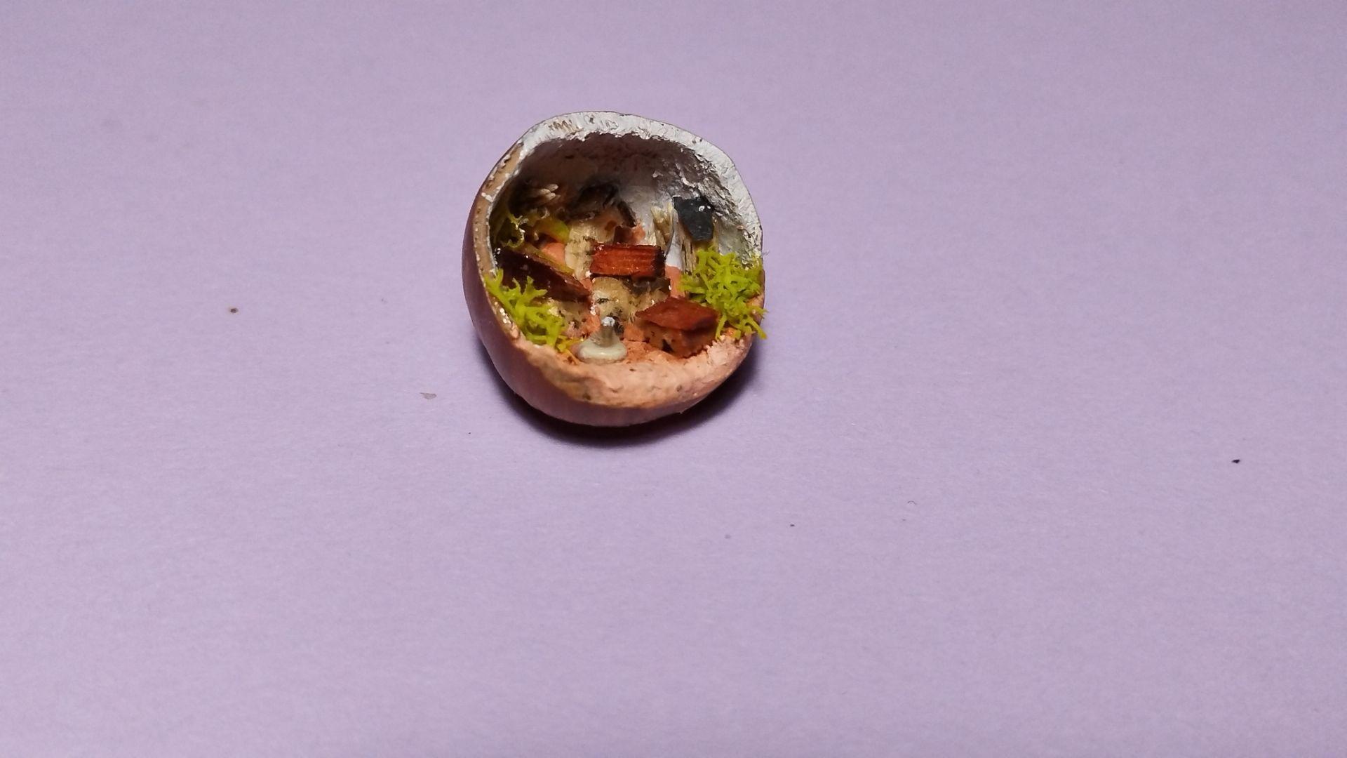 Un petit village dans une noisette qui s'est un peu trop ouverte pour devenir un pendentif